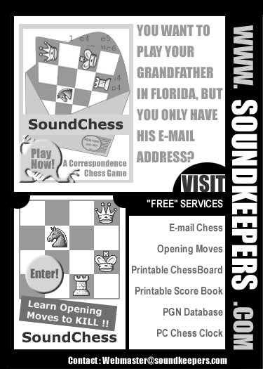 06.21.2001 : 4000+ PGN files. Boris Spassky was added today. Print them to play with your friends.